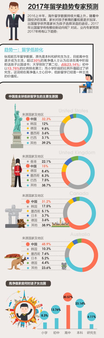 人民網北京7月29日電 (記者 郝孟佳)28日,外聯出國聯合界面發布《2016中國學生國際流動性趨勢報告》。報告指出,2016上半年海外留學數據持續大幅上升。隨著中國經濟的高速發展,家長對孩子教育的重視度逐步加深,出國留學依然是家長為孩子選擇深造的途徑。