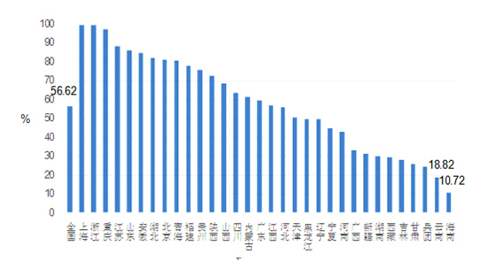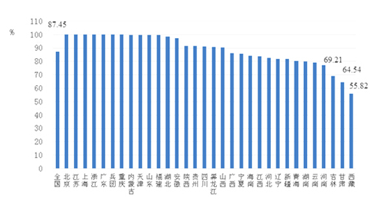 圖1 2016年全國各省接入互聯網的中小學比例情況