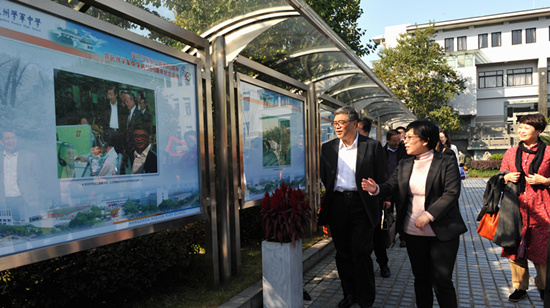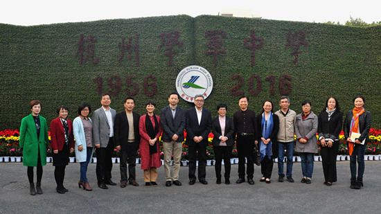 朱永新考察杭州學軍中學(圖片來源:杭州學軍中學)