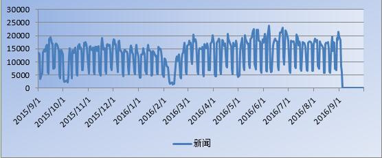 從媒體關注趨勢圖來看,在監測時間段內(2015年9月至2016年9月),媒體對高校的報道熱度呈高溫態勢,報道量(含轉載量)達到514萬篇。每月的報道篇數在15000篇以上。從報道趨勢來看,5-9月份報道量顯明高于其它月份,這與招生、畢業季、開學季緊密相關。
