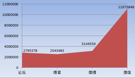 2015-2016年度,全國126所高校網絡關注度總量達1955.7萬,其中論壇總量達279.5萬,博客總量254.3萬,微博總量314.5萬,微信總量1107.4萬。