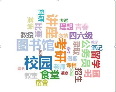 根據網民在高校自媒體平臺及相關門戶網站留言評論情況,整理出詞頻云圖,網民主要關注“考研”、“公務員”、“出國留學”、“招生”等話題信息,說明網民主要還是關心高校動態及學生利益相關議題。