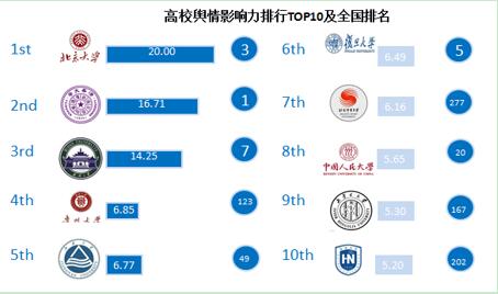 1. 高校網絡輿論影響力TOP10全國排名情況