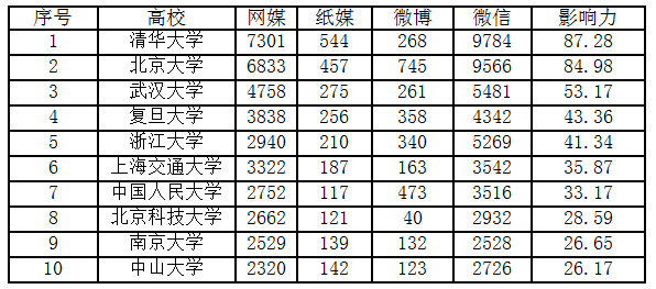 2015—2016中國高校社會影響力排行榜(二):高校媒體影響力
