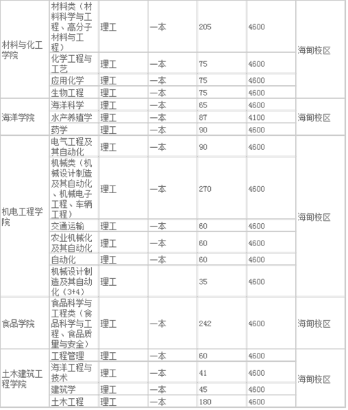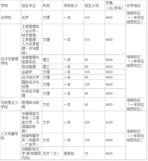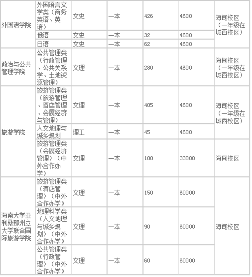 2、海甸校區招生專業在上海、山東為本科普通批,在海南為本科A批,在浙江為普通類批次,在其他27個。ㄊ、區)錄取批次均為本科一批。儋州校區招生專業在山東為本科普通批、海南為本科A批,浙江為普通類批次,安徽、福建、甘肅、廣西、貴州、河南、湖北、江西、山西、四川、云南共11個。▍^)為本科二批。
