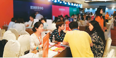 圖為日前在啟德教育集團舉行的教育展上,家長在現場咨詢。