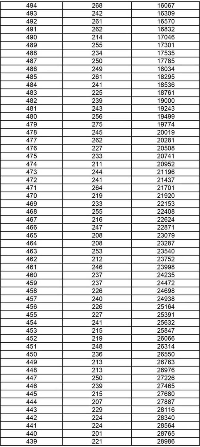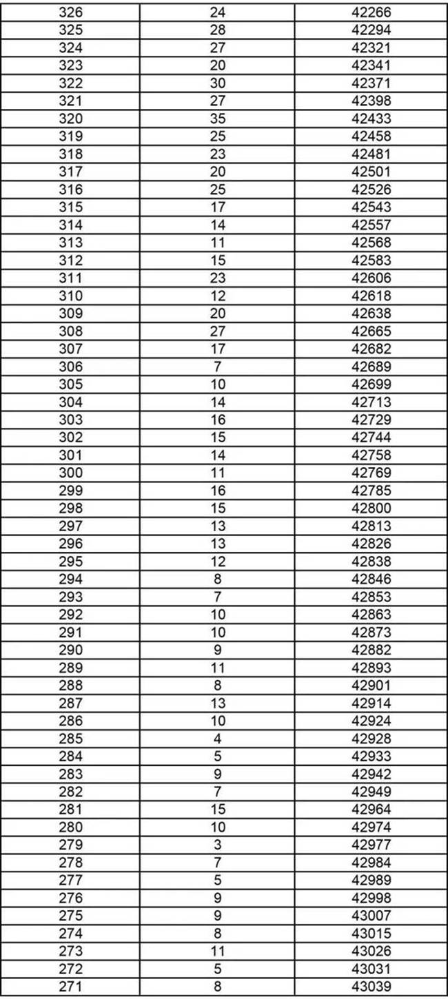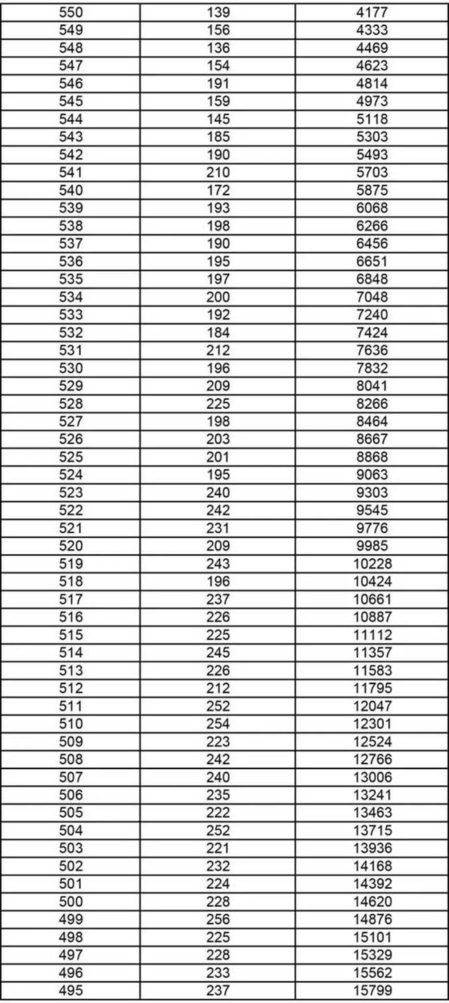 人民網北京6月24日電 2017年上海高考綜合類分數段統計情況如下表: