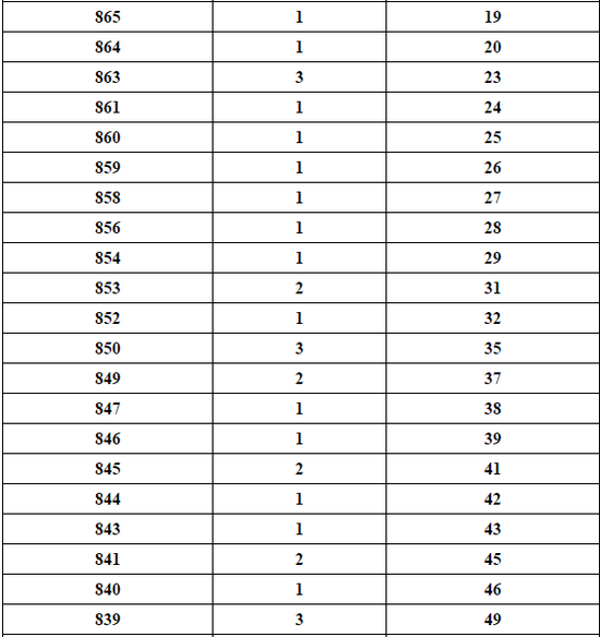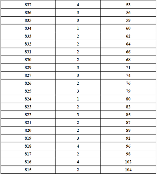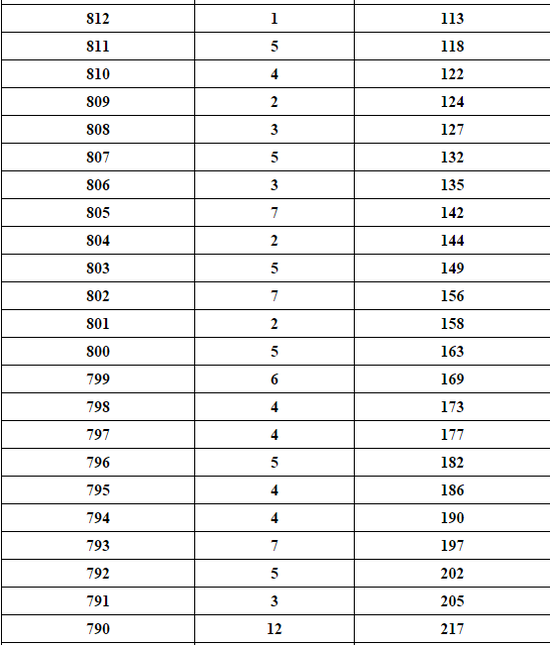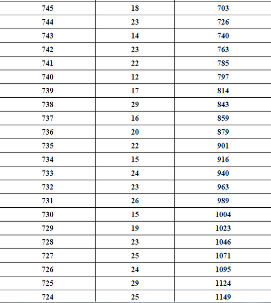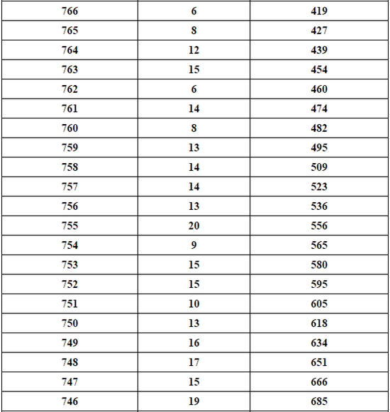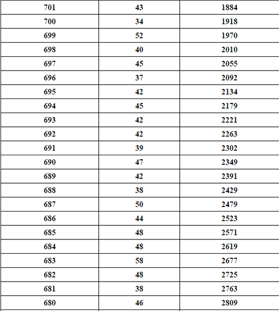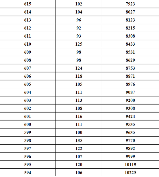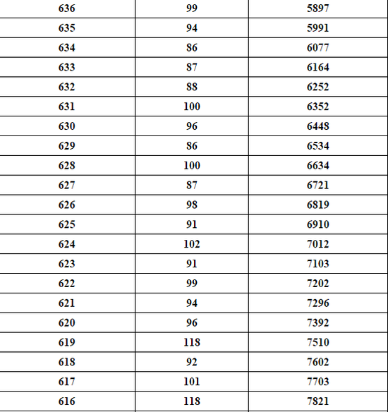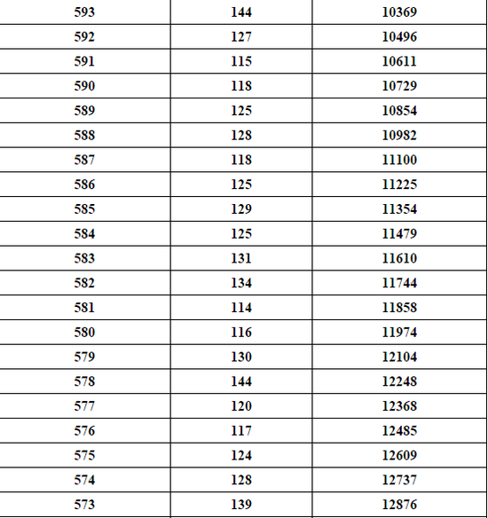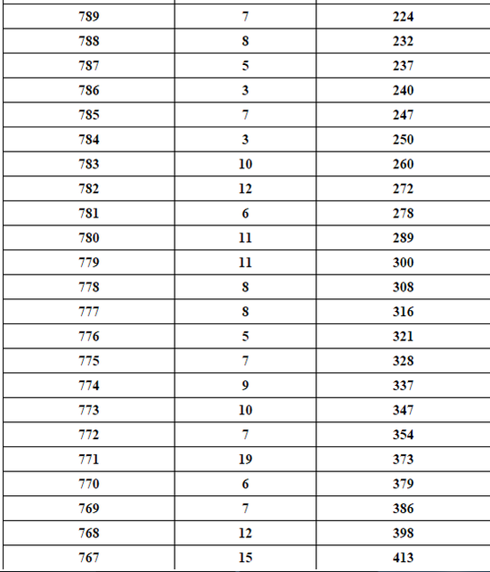 2017年海南普通高考理科類分數段統計表詳細如下: