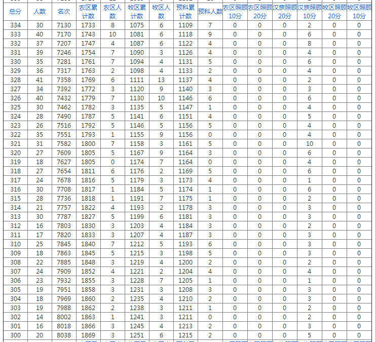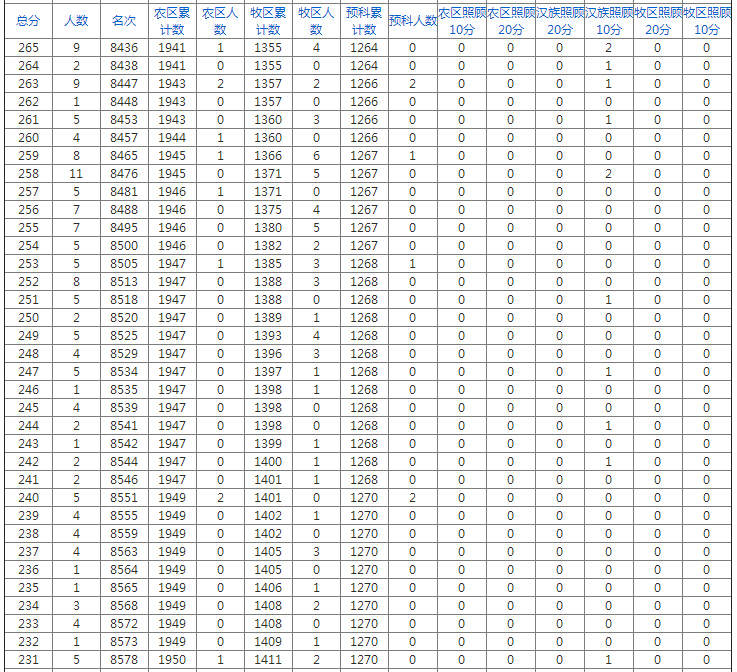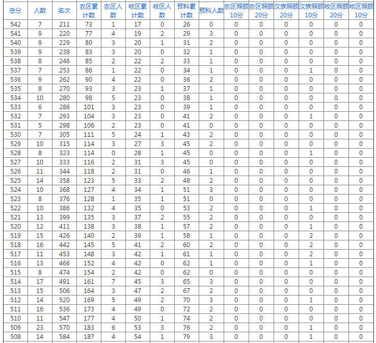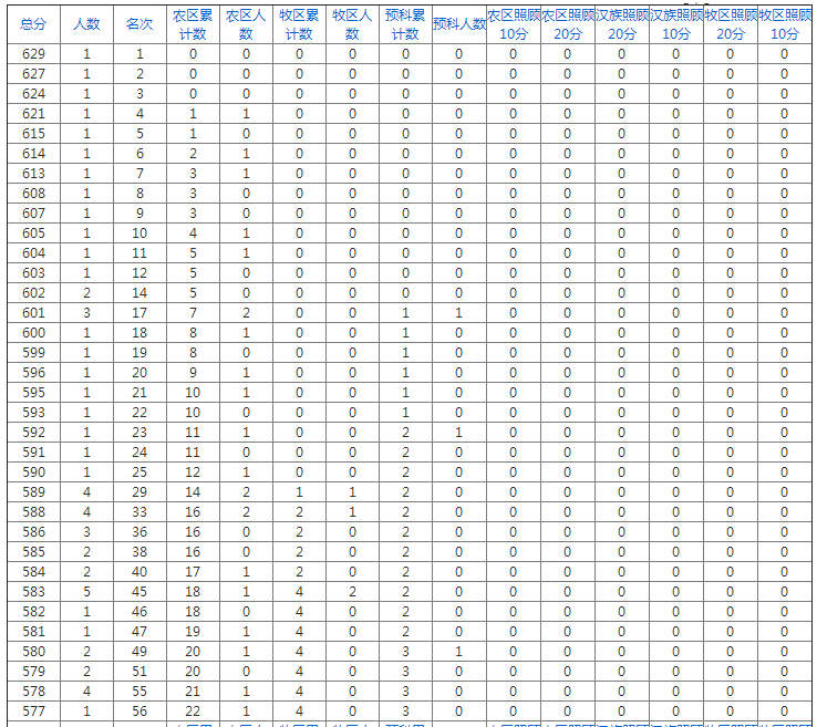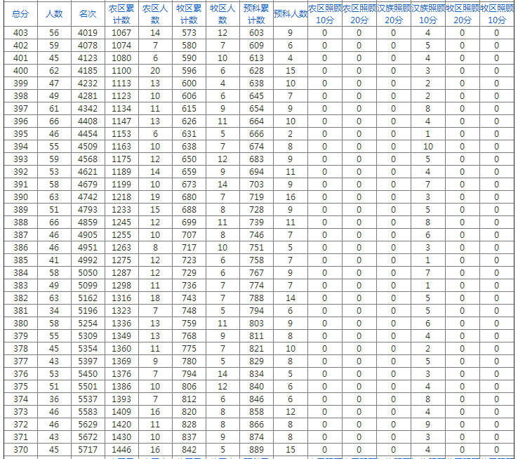 2017年青海普通高考文科類分數段統計表詳細如下: