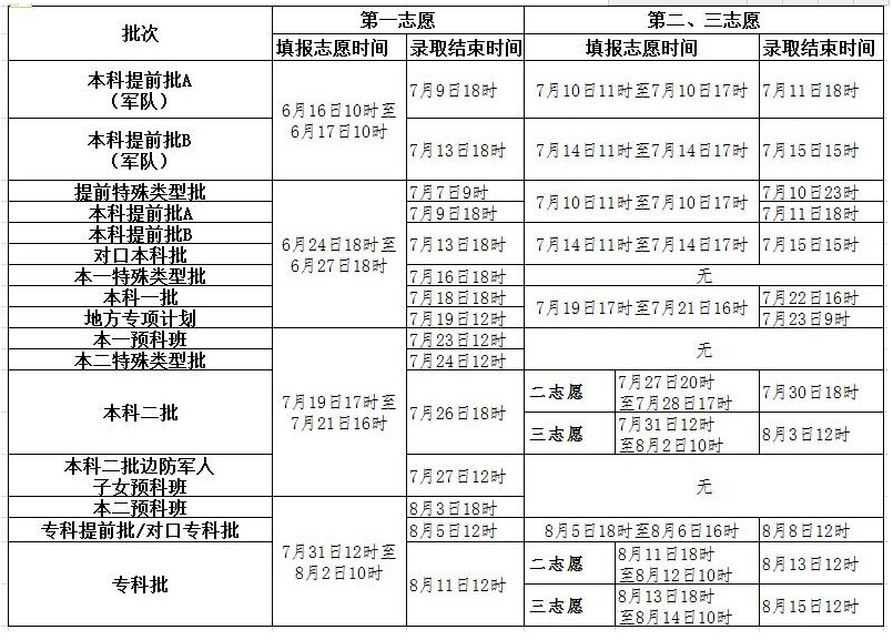 2017年河北省填報志愿和錄取的時間安排如圖: