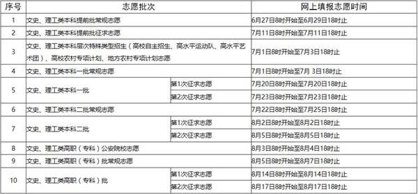 1.高校自主招生、高校農村專項計劃和地方農村專項計劃,安排在文史、理工類本科提前批之后、本科一批之前進行。高水平運動隊和高水平藝術團招生按照本科一批錄取控制分數線錄取的院校(專業)安排在文史、理工類本科提前批之后、本科一批之前進行;按照本科二批錄取控制分數線錄取的院校(專業)安排在文史、理工類本科一批之后、本科二批之前進行。