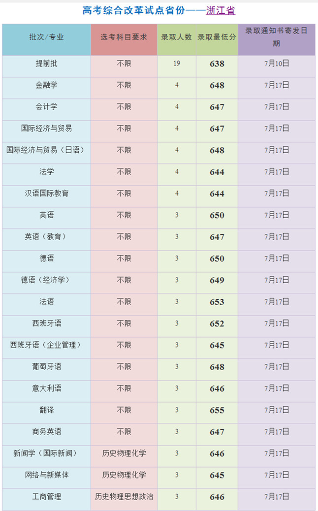 上海外國語大學發布29個省市本科一批錄取最低分數
