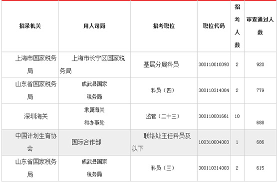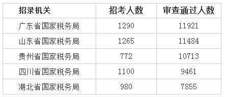 2018國考報名過審人數最多前五部門[截止11日2日16時]