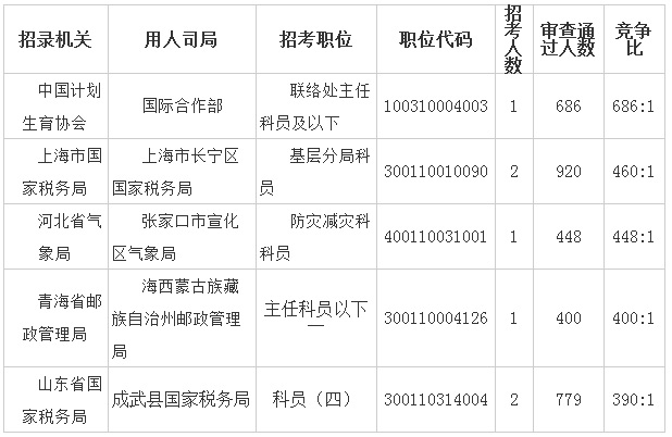 目前競爭最激烈的職位來自中國計劃生育協會國際合作部聯絡處主任科員及以下(職位代碼100310004003)這一職位,僅招錄1人,目前已有686人報名。