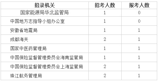 目前,國家能源局華北監管局、中國地方志指導小組辦公室兩個部門仍處于虛位以待的狀態,符合條件的考生可以重點考慮,以下幾個部門報考都相對“冷清”,考生們可在職位表里查看相關條件信息,看是否能夠報名。