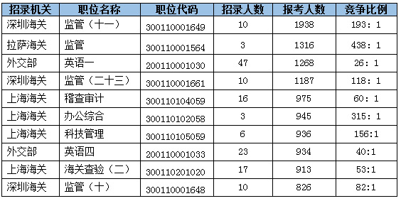 從表1可以發現,海關包攬了10大崗位中的8個,但是如此大的競爭比也讓不少考生望而生畏。
