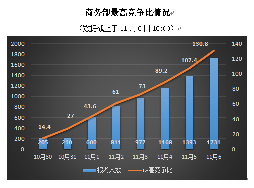 2018年國考報名第八天:商務部最高競爭比達130.8:1