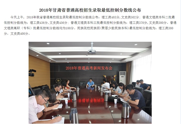 甘肅省2018招生錄取一本線文科502分 理科483分