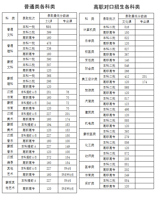 內蒙古2018招生錄取一本線文科501分 理科478分