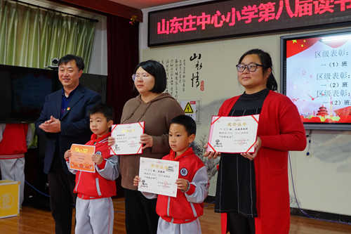 4月23日,山東莊中心小學第八屆讀書節開幕。本屆讀書節將圍繞“我們愛讀書 我們愛祖國”,開展“班級讀書會”、“讀書沙龍”、“校園圖書漂流”等系列讀書活動,表達對祖國媽媽的深深愛戴,慶祝新中國成立70周年。開幕式上,對書香教師、書香少年、書香班級、書香家庭進行了表彰,教師、學生、家長進行了誦讀展示。