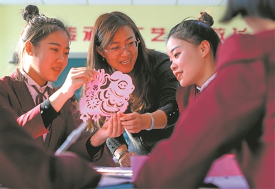 教師指導學前教育專業學生學習剪紙。張學軍/攝