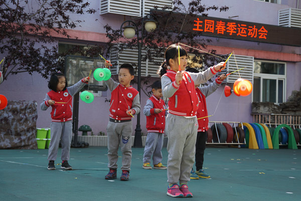 4月25日棉花胡同幼兒園迎來了春季運動會。在運動會上,大班的小朋友們展示了平時常玩的民間傳統體育游戲,他們玩起了抖空竹、跳長繩、跳竹竿、跳皮筋等等。這些游戲都是孩子們戶外活動時最喜歡的游戲,他們感受著游戲的快樂。小朋友們在民間體育游戲中感受傳統文化的魅力,繼承了祖國傳統優良的文化。