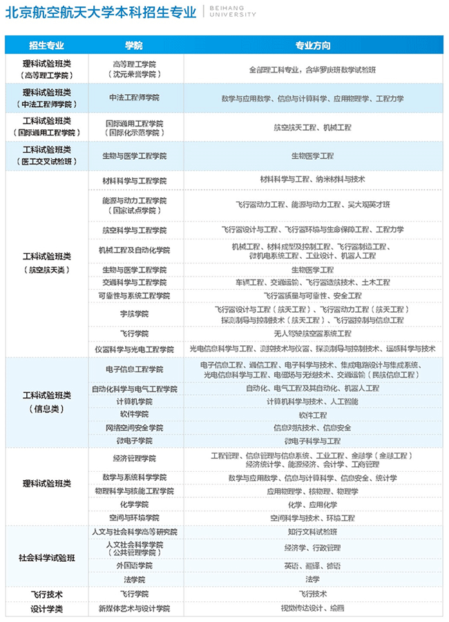 四個大類的考生在錄取后,先統一到北航學院學習。北航學院不同于傳統的專業學院,是專門為大類招生、大類培養改革而成立的,負責一、二年級學生的培養和管理。