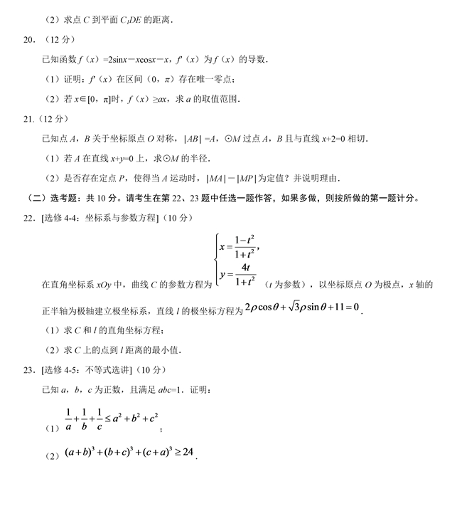 2019年全國卷Ⅰ文科數學高考試題【5】