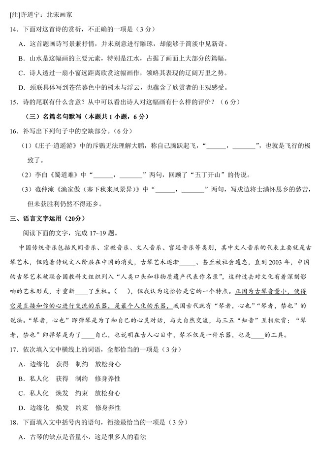 2019年全國卷Ⅰ語文高考試題【9】
