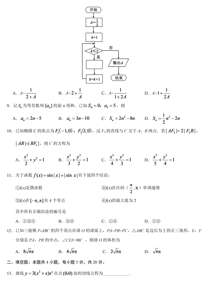 2019年全國卷Ⅰ理科數學高考試題【3】