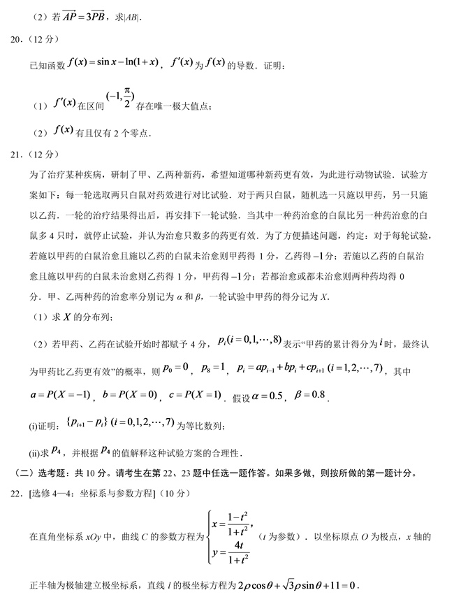 2019年全國卷Ⅰ理科數學高考試題【5】