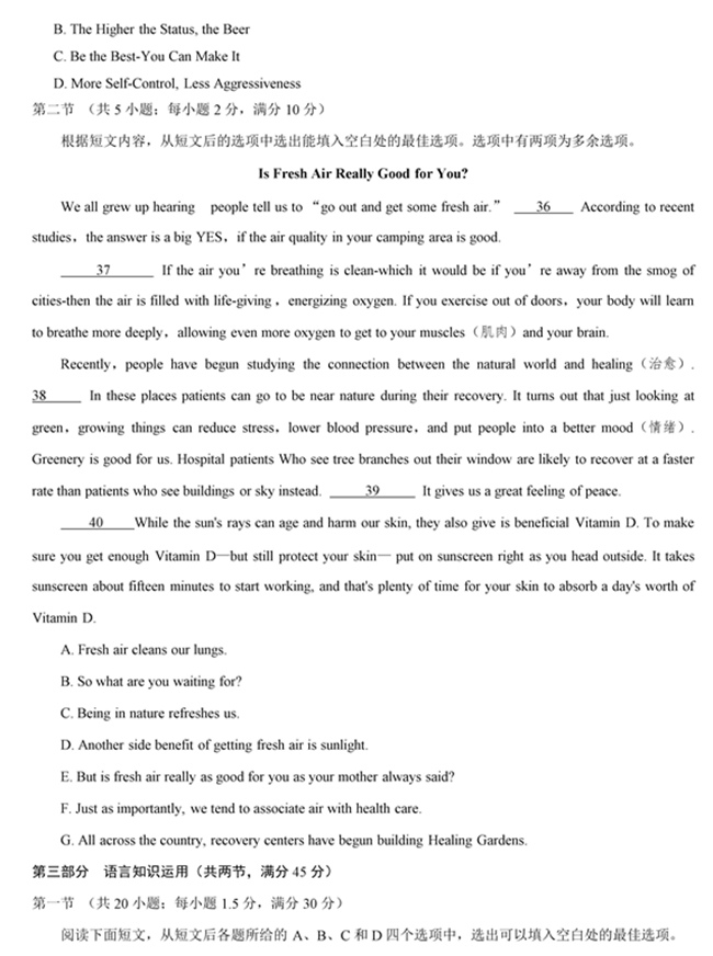 2019年全國卷Ⅰ英語試題【7】