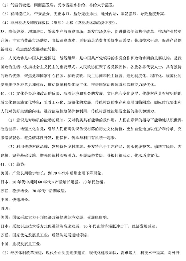 2019年全國卷Ⅰ文綜高考試題答案【2】