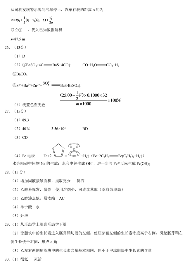 2019年全國卷Ⅱ理綜高考試題答案【3】