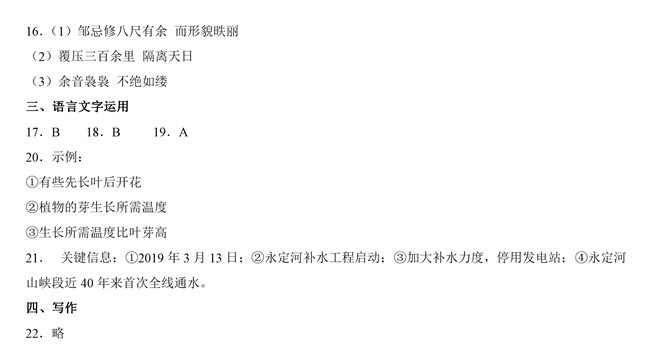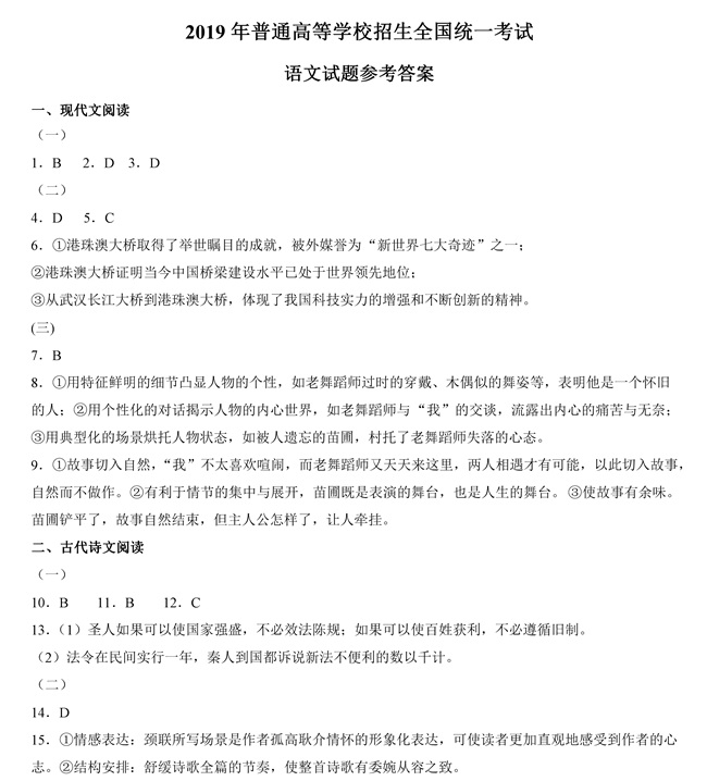 2019年全國卷Ⅱ語文高考試題答案