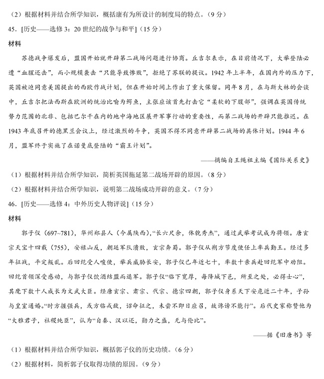 2019年全國卷Ⅲ文綜高考試題【14】