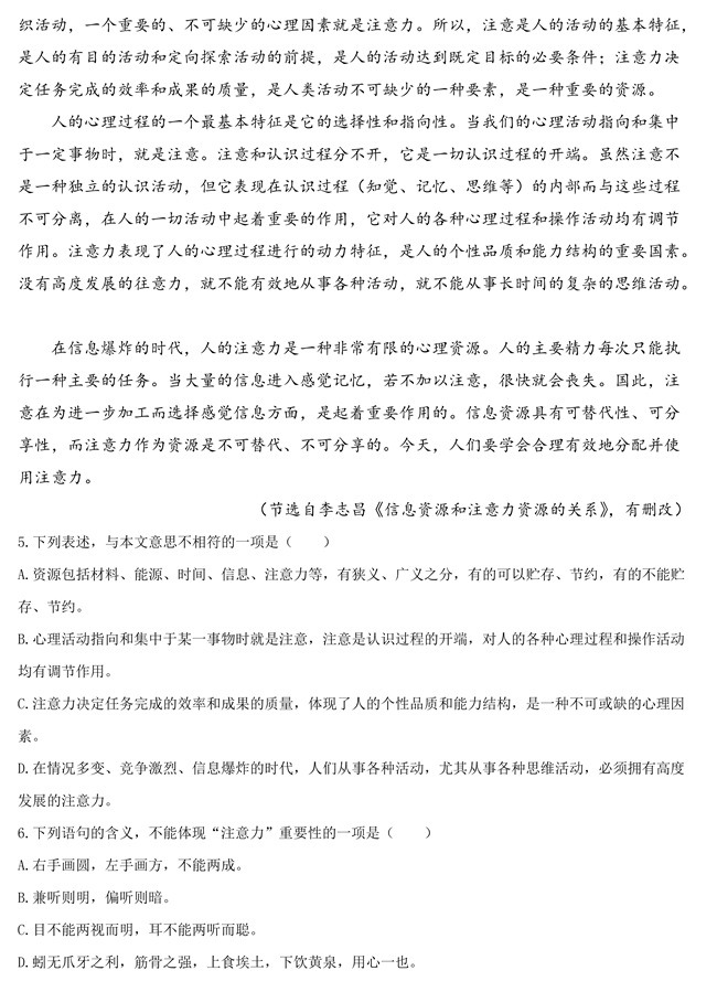 2019年天津卷語文高考試題【3】