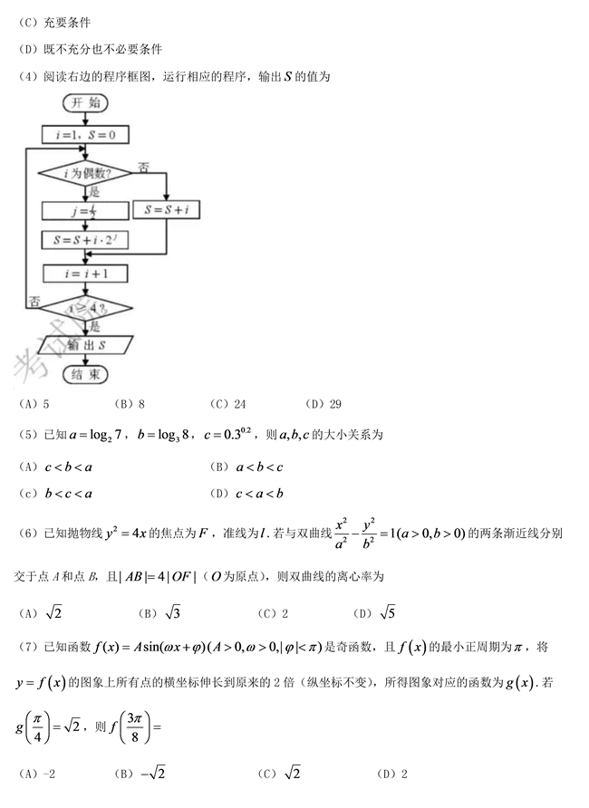 2019年天津卷文數高考試題【2】