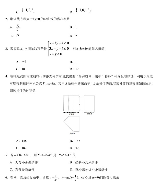2019年浙江卷數學高考試題【2】