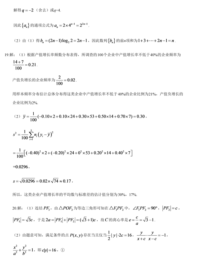 2019年全國卷Ⅱ文科數學高考試題答案【2】