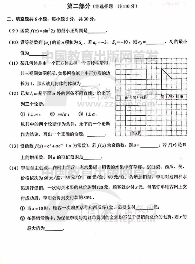 2019年高考北京市理科數學試卷【3】