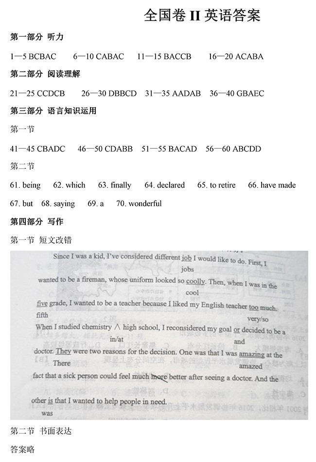 2019年全國卷Ⅱ英語高考試題答案