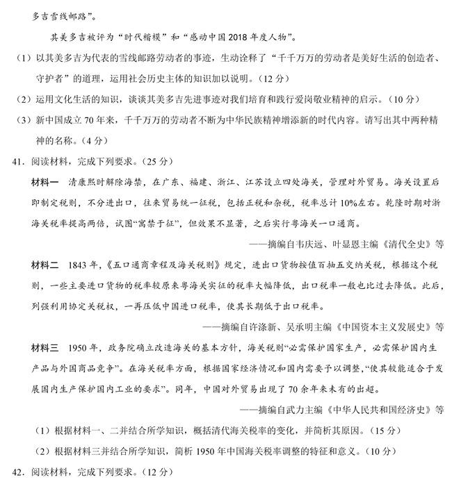 2019年全國卷Ⅱ文綜高考試題【10】