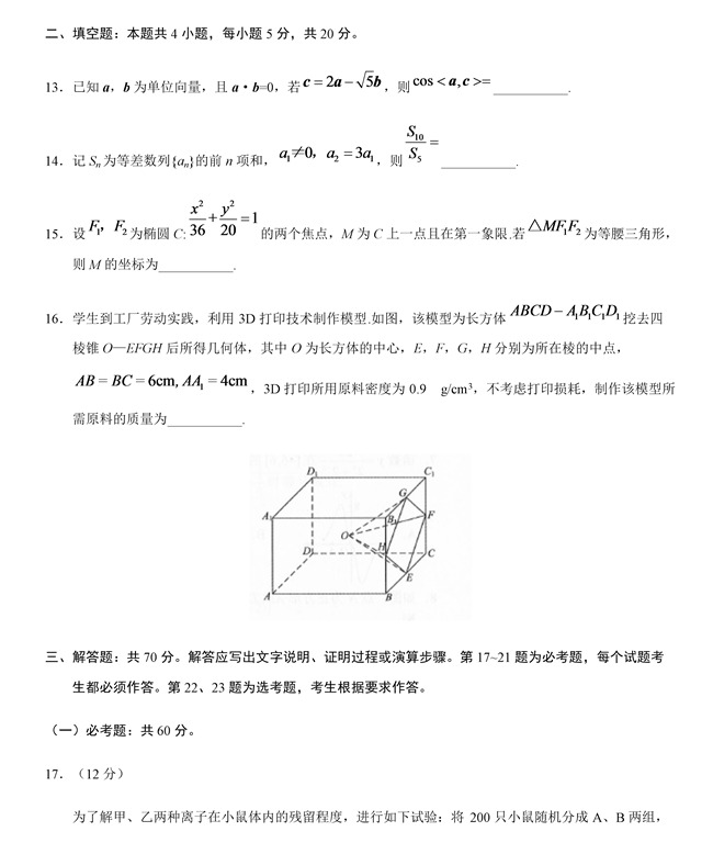 2019年全國卷Ⅲ理數高考試題【5】