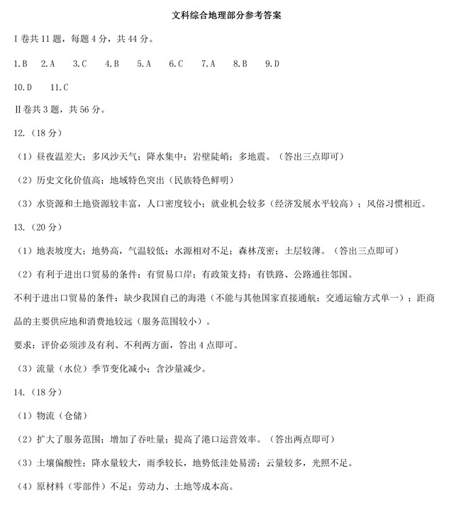 2019年天津卷文綜高考試題答案【5】