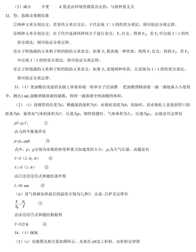 2019年全國卷Ⅲ理綜高考試題答案【5】