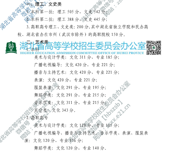 人民網北京6月24日電 據湖北省教育考試院網站消息,湖北省2019年普通高校招生考試各類別錄取控制分數線如下:
