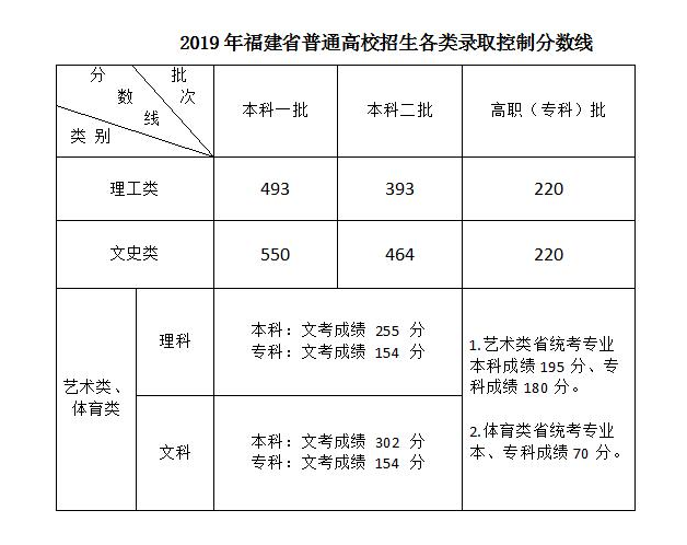 人民網北京6月24日電 據福建省教育考試院網站消息,福建省2019年普通高校招生考試各類別錄取控制分數線如下: