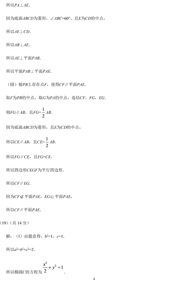 2019年高考北京市文科數學試題答案【4】