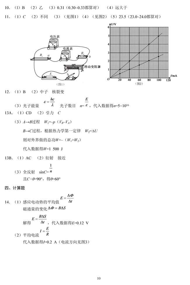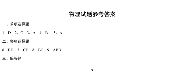 2019年高考江蘇省物理試題答案